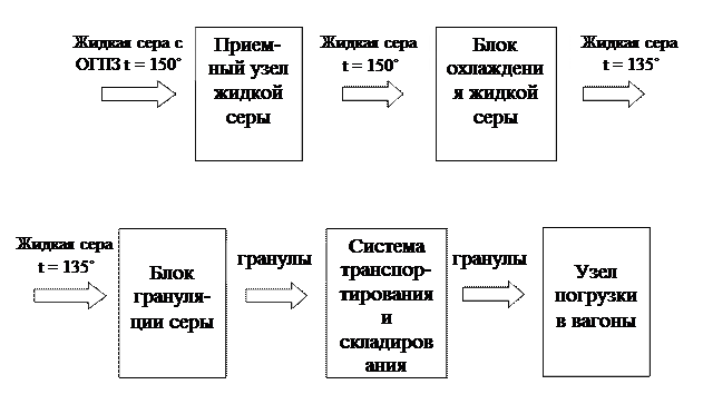 Упрощенная технологическая схема производства гранулированной серы представлена на рисунке 1.2.