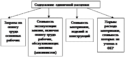 Единичная расценка состоит из: оплаты труда рабочих, сметной стоимости материала и стоимости эксплуатации машин.