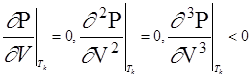 Êðèòè÷åñêîå ñîñòîÿíèå âåùåñòâà ìîæíî íàãëÿäíî èëëþ-ñòðèðîâàòü â êîîðäèíàòàõ P-V , T-S è P-Ò. Íà äèàãðàììå P-V ôàçîâîãî ðàâíîâåñèÿ æèäêîñòü-ïàð (ðèñ.1.1) òî÷êà ïåðåãèáà Ê èçîòåðìû Òê ÿâëÿåòñÿ êðèòè÷åñêîé, à êîîðäèíàòû åå (Òê,Ðê,Vê) - êðèòè÷åñêèìè ïàðàìåòðàìè âåùåñòâà. Êðèòè÷å-ñêàÿ òî÷êà õàðàêòåðèçóåòñÿ óñëîâèÿìè, îïðåäåëÿþùèìè òî÷êó ïåðåãèáà ñ ãîðèçîíòàëüíîé êàñàòåëüíîé [1],[2]: