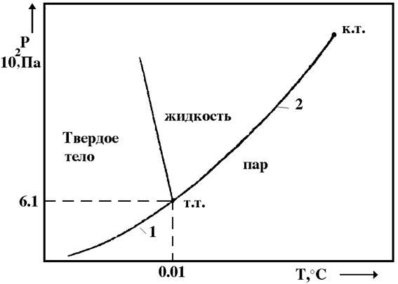 Ïðè òåìïåðàòóðàõ Ò>Òê (Ð>Pê) âåùåñòâî îäíîðîäíî, ïîâåðõíîñòü ðàçäåëà îòñóòñòâóåò. Ïðè òåìïåðàòóðàõ Ò<Òê (Ð<Ðê) âåùåñòâî íàõîäèòñÿ â îäíîôàçíîì èëè äâóõôàçíîì ñîñòîÿíèÿõ. Ñëåâà îò îáëàñòè, îãðàíè÷åííîé áèíîäàëüþ è êðèòè÷åñêîé èçîòåðìîé, ëåæèò îáëàñòü æèäêîé ôàçû, ñïðàâà - îáëàñòü ãàçîîáðàçíîé ôàçû.