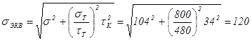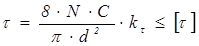 Расчеты показывают, что касательное напряжение от перерезывания меньше чем от момента кручения. Поэтому проверочным условием будет: