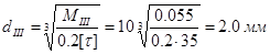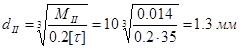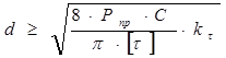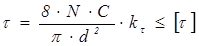 Расчеты показывают, что касательное напряжение от перерезывания меньше чем от момента кручения. Поэтому проверочным условием будет:
