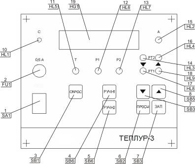 Включить ручной режим кратковременным нажатием на кнопку «РУЧН1» или «РУЧН2», при этом должен загореться индикатор «Р1» или «Р2», для «Теплур-1» - «Р». Проверить работу приводов регуляторов в ручном режиме нажатием на кнопки «▲» – открыть и «▼» – закрыть; при этом должны загораться соответствующие индикаторы и происходить перемещение штока регулятора. Отключить ручной режим нажатием в течение 1 с. на кнопку «РУЧН1» или «РУЧН2»,для «Теплур-1»-«РУЧН»; при этом должен погаснуть индикатор «Р1» или «Р2», для «Теплур-1» - «Р» .