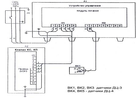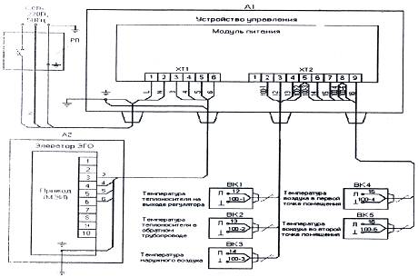 – временно отключить провода от контактов 1 - 9 блока зажимов ХТ2 устройства управления и зажимов датчиков;