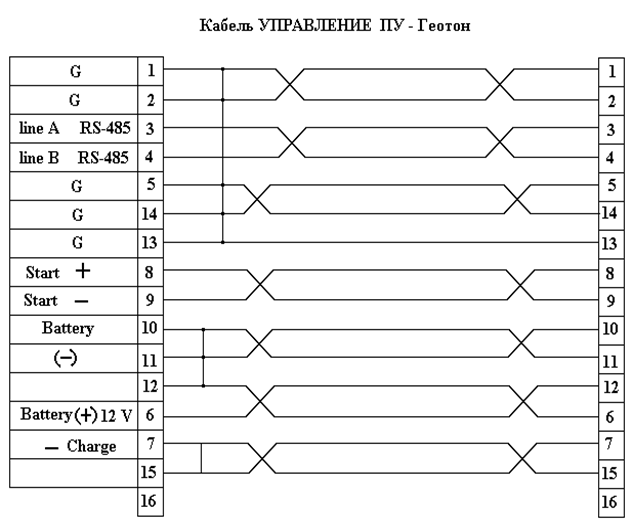 В комплект кабелей источника «Геотон 06» входит один телеметрический кабель «Управление», оснащенный двумя соединителями СН-41 (розетка и вилка). Длина этого кабеля дополнительно согласовывается с заказчиком. Кабель служит для передачи команд заряда и запуска и получения данных по величине заряда и данных от акселерометров.