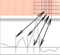 Идеальное положение - изображение разгонки начинается как можно ближе к правому краю окна считывания программы. (Позиция 5).