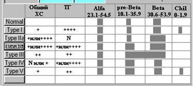Таблица нормальных величин фракций липопротеидов установленных «по умолчанию»