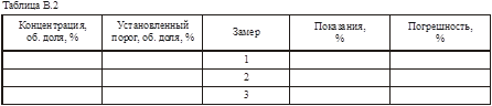 3.2 Проверка допускаемой абсолютной погрешности срабатывания порогового устройства газоанализатора (таблица B.2)