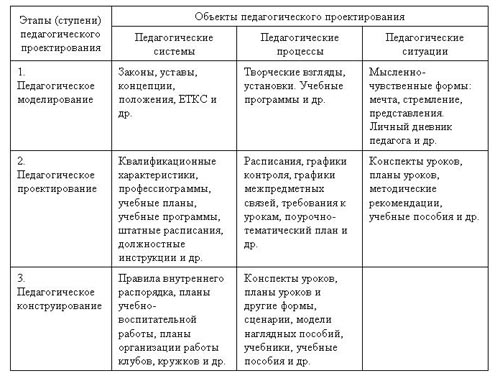 В заключение следует сказать, что все эти этапы так или иначе, но проявляются в проектировании любого педагогического объекта, в любой форме его проектирования. Осмысление их поможет саму процедуру сделать более экономной и целенаправленной, более грамотной.