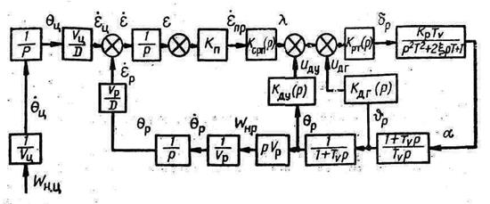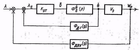 Рис. 14. Контур системы самонаведения при реализации метода параллельного (пропорционального) сближения