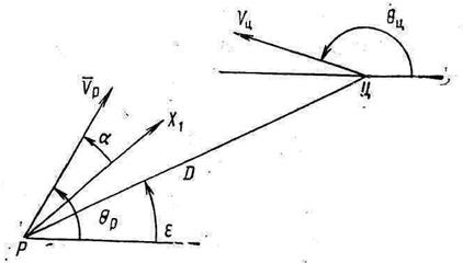 ориентацию в пространстве которого определяет угол , величина и скорость изменения которого зависят как от параметров движения цели, так и от параметров движения ракеты.
