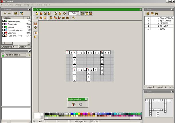 3. Создание кроссворда с помощью программы Decalion 1.2.