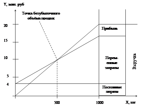 80. Определение критического (безубыточного) объёма продаж графическим способом (показать на примере).