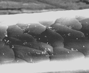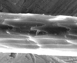 Известно, что при длительном действии воды происходит набухание и расслоение клеток кутикулы, отхождение их от коркового слоя волоса, происходит потемнение кожевой ткани, появление ее разрыхленности, а затем чрезмерной жесткости, ломкости.