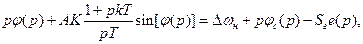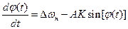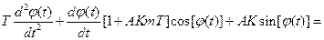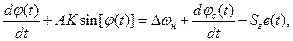 Вычитая из равенства (1) равенство получаем другой вариант записи символического уравнения системы ФАПЧ:  (2) где (или ) – разность полных фаз входного радиосигнала и выходного колебания ГУНа, – начальное рассогласование по частоте между названными колебаниями.