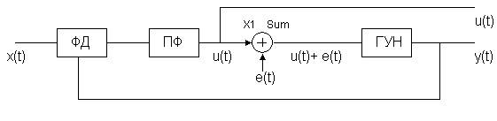 ) – внутреннее управляющее напряжение системы ФАПЧ, – Sum – сумматор напряжений и (который при отсутствии напряжения также отсутствует), – ФД – фазовый дискриминатор (детектор), сравнивающий полные фазы колебаний и , – (t