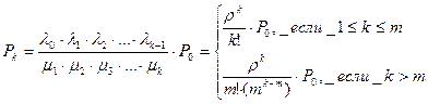 Рассчитаем вероятность того, что в системе k клиентов (доля времени, в течении которого система занята k клиентами):