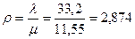 Для того, что бы существовала стационарность, необходимо, чтобы коэффициент загруженности системы (ρ) был меньше числа обслуживающих приборов (m), т.е. ρ<2.