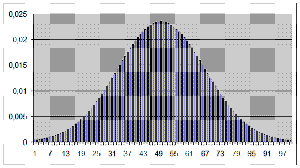 В пределы двух стандартных отклонений попадает около 94%, а в пределы трех стандартных отклонений почти все сдававшие за исключением сотых долей процента.