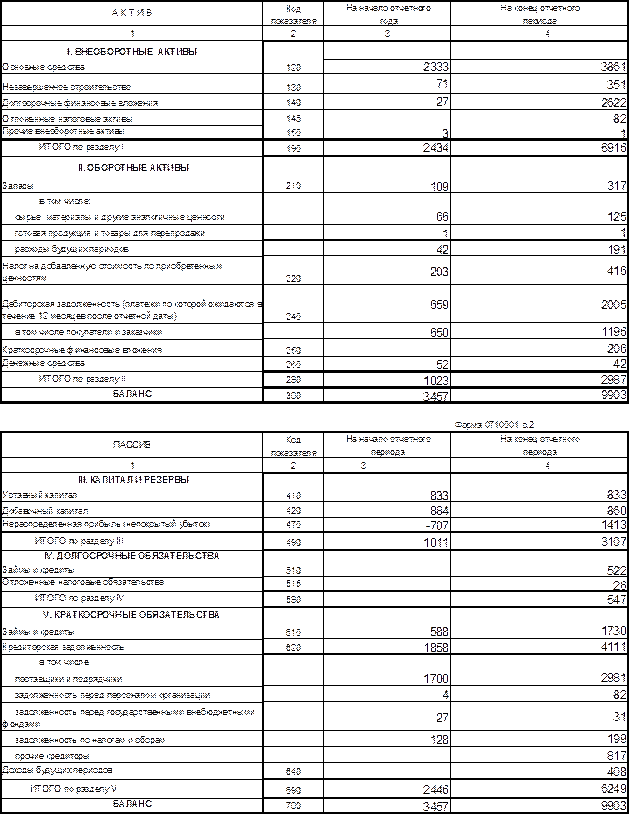 Формы бухгалтерской отчетности ЗАО «Шторм»