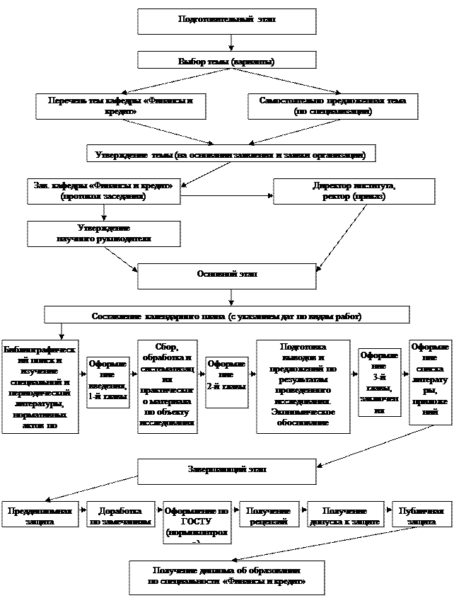 Важным условием подготовки высококвалифицированных экономистов по специальности 080105.65 «Финансы и кредит» является организация выполнения выпускных квалификационных работ в форме дипломных. Требования к организации выполнения и защиты выпускной квалификационной работы закреплены Положением об итоговой государственной аттестации выпускников высших учебных заведений Российской Федерации, утвержденного приказом Минобразования РФ от 250марта 2003 года № 1155, а также внутривузовским стандартом процедуры защиты выпускной квалификационной работы.