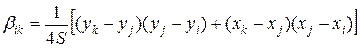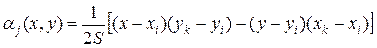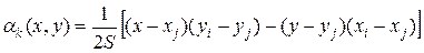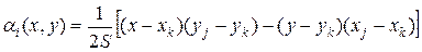 Наиболее распространенными конечными элементами для двумерных задач являются треугольные элементы (рис.1) с линейными базисными функциями (S - площадь треугольника):
