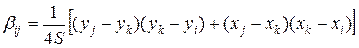 Положительное значение площади S обеспечивается нумерацией вершин треугольника против часовой стрелки.