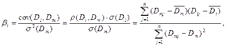 ) — ковариация доходности i-го вида акций и среднерыночной доходности акций;