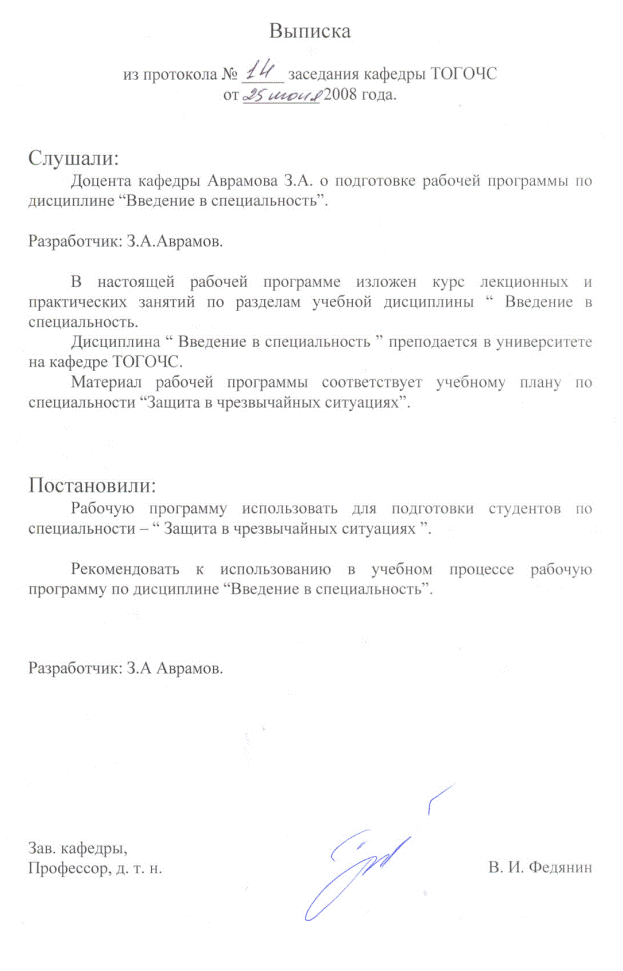 Зав. выпускающей кафедры __________________ В. И. Федянин