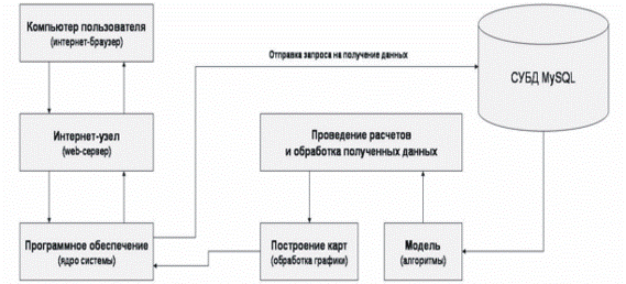 Все ИС являются полноценными web-приложениями. Общая схема функционирования типичных разработанных ИС и их взаимодействия с пользователем может быть представлена следующим образом (рис. 3):