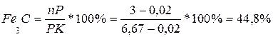 химическое соединение железа с углеродом (карбид железа), содержит 6,67 % углерода. Более точные исследования показали, что цементит может иметь переменную концентрацию углерода. Однако в дальнейшем, при разборе диаграммы состояния, сделаем допущение, что Fе3