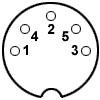 Каждый инструмент имеет три соединительных разъема: In (вход), Out (выход) и Thru (копия сигнала с In через буфер). Все разъемы - типа female DIN-5 (СГ-5), вид с наружной стороны (стороны соединения):