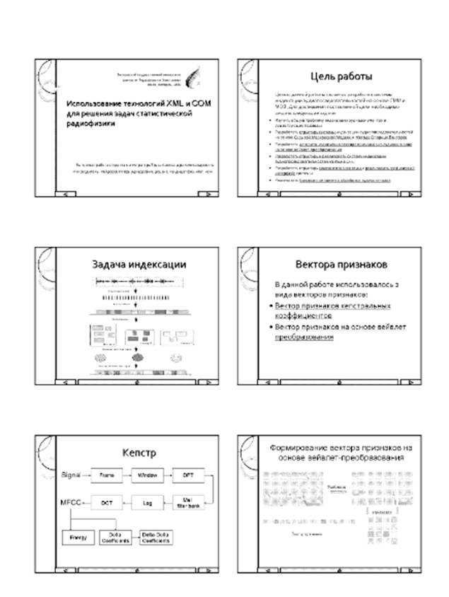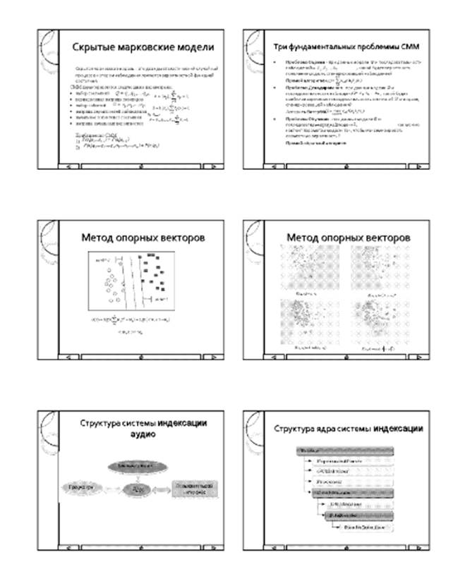 Представленное в данной работе описание стандартов XML и COM и их применение для построения системы индексации аудиопоследовательностей демонстрирует возможность использования данных технологий. Язык XML был использован в качестве основы для языка описания сценариев, а также для описания данных внутри системы. Технология COM использовалась для того, чтобы сделать возможным подключение дополнительных модулей обработки данных в процессе использования системы конечным пользователем. Проведенные на основе системы эксперименты продемонстрировали возможности системы и подтвердили ее полезность.