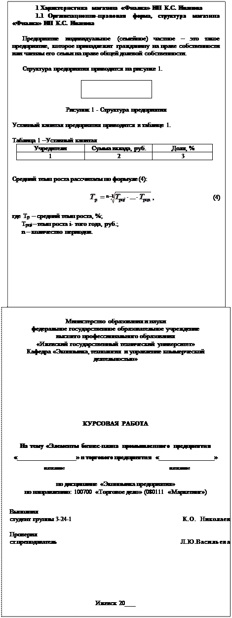 Курсовая работа предусматривает «создание» студентом небольших предприятий: промышленного и торгового. Соответственно, курсовая работа состоит из двух частей, которые включают одинаковые разделы (табл. 1).