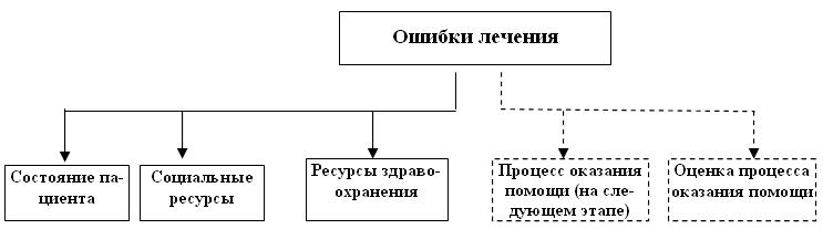 - это неправильное действие (бездействие) врача, имеющее в своей основе несовершенство современной науки, объективные условия работы, незнание или неспособность применять имеющиеся знания в практике. В приведенном определении объединены причины ошибок, которые отечественные авторы традиционно разделяли на объективные и субъективные. К объективным причинам, способным оказать влияние на процесс медицинской помощи и результаты лечения пациентов, относятся: