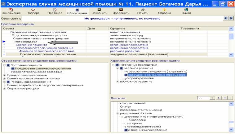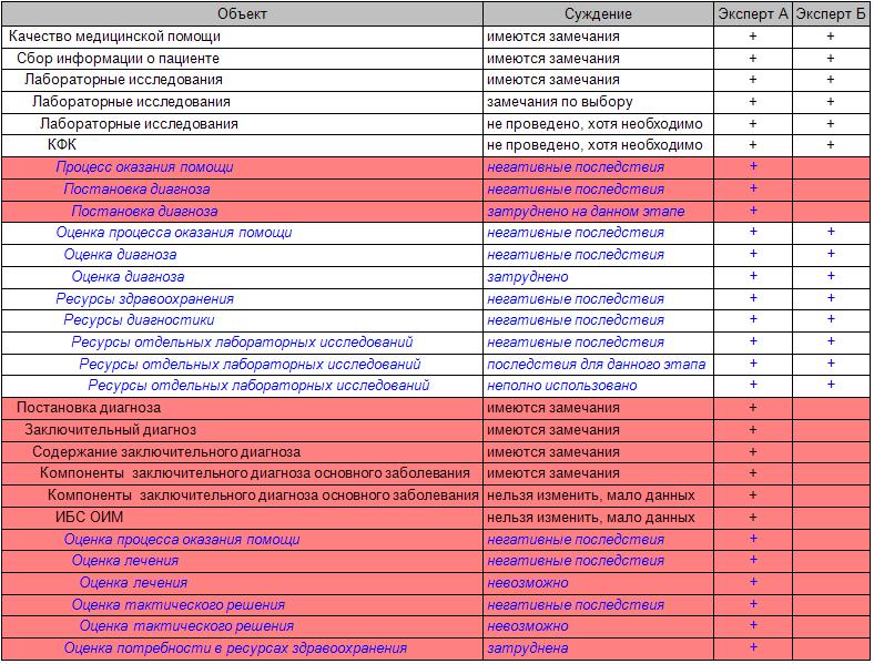1) отсутствие согласованного определения понятия "качества медицинской помощи", представления о факторах определяющих состояние КМП и его классификации; 2) невозможность минимизации субъективизма экспертов (за одну и туже ошибку эксперты могли выставить разные оценки); 3) невозможность контроля процесса формирования экспертного мнения из-за непрозрачности и невоспроизводимости процесса экспертизы; 4) невозможность учета отдельных грубых дефектов помощи при расчете среднеарифметических показателей (нулевая оценка, могла быть дана как и ошибке, связанной с излишним назначением какой-либо диагностической процедуры, так и ошибке лечения, приведшей к развитию угрожающего жизни пациента осложнения); 5) невозможность учета нескольких врачебных ошибок при снижении балла за этап врачебного процесса (даже при наличии нескольких ошибок обследования или лечения балл за соответствующий подблок врачебного процесса снижался один раз); 6) трудность обобщения и обсчета неформализованных описаний врачебных ошибок, несмотря на их наличие в специальном разделе. Выявление закономерностей (типичных ошибок) было практически невозможным, что существенно снижало информативность методики и ее применимость для управления КМП.