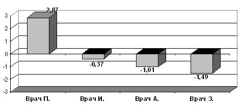Рис. 19. Интегрированные (нормированные) показатели КМП по 4 врачам отделения ОИМ.