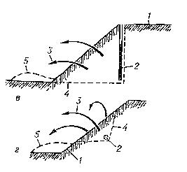Взрывами на сброс называют Направленный взрыв при наличии наклонной или вертикальной поверхности массива. Применяют систему скважинных зарядов (рис.,7 в) либо один или несколько камерных зарядов (рис.,7 г).