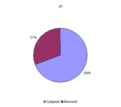 Длительная бездеятельность и потеря источника существования приводят к упадку моральных устоев, потере самоуважения, распаду семьи и т.д. Потеря же работы вообще, вне срока бездеятельности, повышает уровень дискомфорта, а, следовательно, должна увеличивать уровень ситуативной тревожности личности. При этом у 31% успешно работающих испытуемых и у 15% безработных выявлены высокие личностная тревожность (ЛТ); рис. 1, 2.