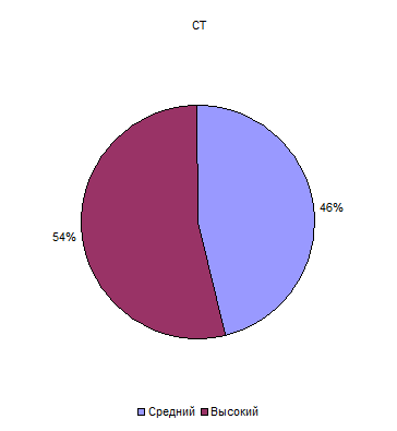 У 31% успешно работающих испытуемых и 54% безработных выявлены высокие значения ситуативной тревожности (СТ), рс. 3, 4.
