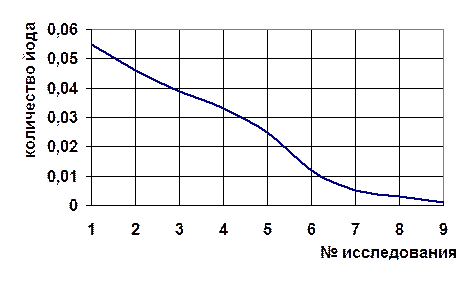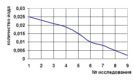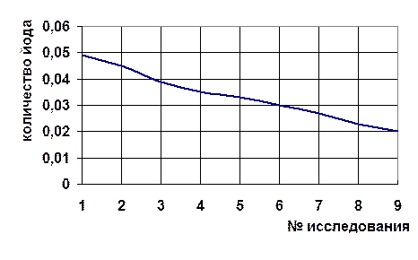 Данная зависимость наглядно показывает, что при малом поступлении элемента йода организму наносится существенный ущерб. Он функционирует на грани выживания. В основном это объясняется снижением активности ферментов, в состав которых входит данный элемент. При повышении дозы йода ответная реакция возрастает и достигает нормы (на кривой представлено в виде плато). При дальнейшем увеличении дозы проявляется токсическое действие избытка элемента йода, в результате чего не исключается и летальный исход.[5]