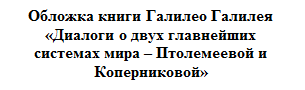 На самом деле работа Галилео Галилея называется «Диалоги о двух главнейших системах мира – Птолемеевой и Коперниковой», но в сокращенном варианте она знаменуется как просто «Диалоги». Эта была написана Галилеем в 1632 году в форме диалогов, в которых участвовали три человека: Сагредо, Сальвиати и Симпличио. Симпличио выражает взгляды Аристотелевской физики, а Сальвиати взгляды Галилея.