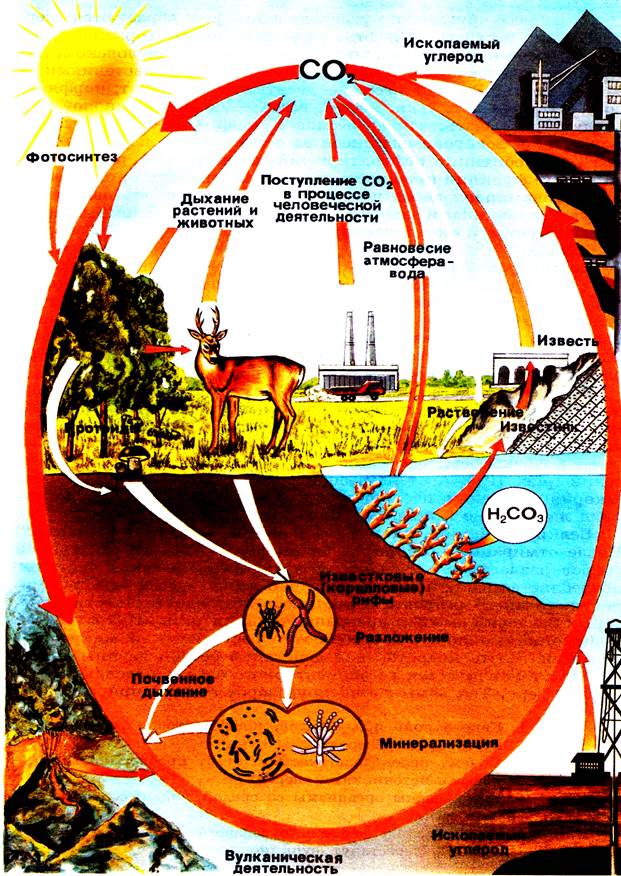 Моря и океаны, зелёные растения не успевают усваивать углекислый газ, который остаётся в оболочке земного шара, перегружает его, нарушает соотношение с кислородом. Это может привести к так называемому «парниковому эффекту» с непредсказуемыми последствиями.