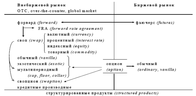 С этой целью используются сделки с производными инструментами (фьючерсы, опционы, свопы), которыми участники рынка оперируют на биржевом и внебиржевом рынках.