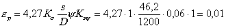 7. Определяем максимальное значение степени растяжения материала в стенке трубы из-за овальности поперечного сечения трубопровода под действием нагрузок по (Д.4 ) при Кσ