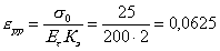 9. Определяем допустимую степень растяжения материала в стенке трубы, происходящего в условиях релаксации по (Д. 15) при σ = 25 МПа