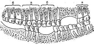 Рис. 2. Распад зубных рядов на самостоятельно действующие группы зубов (по Е. И. Гаврилову):