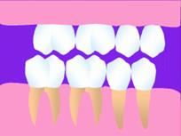 Травматическое смыкание может возникнуть в результате потери зубов (рис. 2). Выпадение или удаление даже одного зуба изменяет нормальную функцию зубочелюстной системы. При потере многих зубов, оставшиеся воспринимают большую нагрузку при жевании. Если отсутствуют жевательные (боковые) зубы, то передние, предназначенные лишь для откусывания пищи, вынуждены взять на себя функцию боковых, что снижает их устойчивость и может привести к расшатыванию.