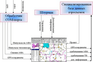 Приложение прошло процесс производственной эксплуатации более 300 часов для различных видов аэросъемки на воздушных судах разного класса. Хотелось бы особо отметить, что данное приложение использует офисную ГИС ArcView 3.х как мощную программу, которая оперирует с большой скоростью потоками данных (схема рис.3.).
