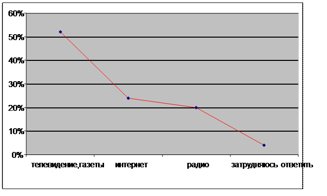 1) При опросе 80 респондентов я выяснила, что основную информацию о межкультурных контактах граждане получают в основном с помощью телевидению и газет, но также имеет место информация в интернете, и иногда по радио. Я считаю, что этой информации в СМИ недостаточно и местное население неполностью информировано в этом вопросе.